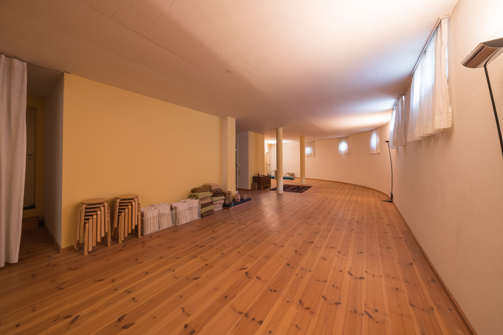 Wir vermieten einen gemütlichen Raum mit ca. 73 m², inklusive Garderobe und separatem WC, ideal für Yogaunterricht, Therapeut*innen, Physiotherapie, Meetings oder kreative Tätigkeiten. Raumhohe Spiegel erweitern den Raum optisch, und der hochwertige Holzriemenboden sorgt für eine angenehme Atmosphäre.